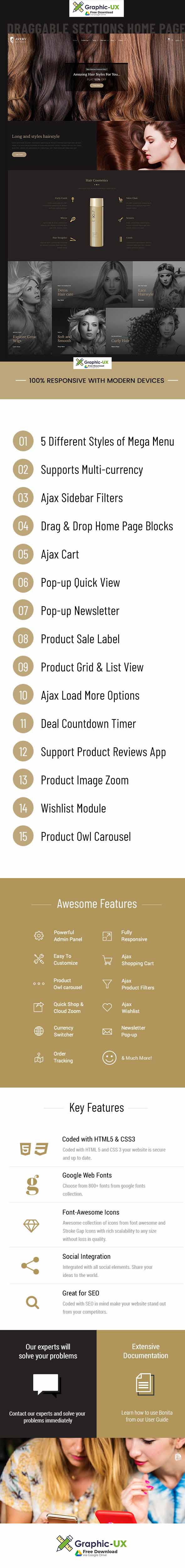 Avery is an elegant and artistic Shopify theme for free download it comes with a sleek and smooth design well suits for the stores selling hair, cosmetic, and skin care products. This is not only a theme, its a perfect solution for the beauty product selling businesses. Using the advanced frontend and backend features you can attract and keep engage more buyers easily. Besides, the theme has been added catchy homepage and various attractive inner pages perfectly suit for your business. Check out the some best features given below.